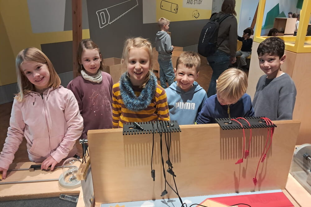 Von der Schule aus sind wir alle zusammen mit einem großen Bus nach Heilbronn zur Experimenta gefahren. Dort angekommen haben wir gegessen und unsere Lehrerinnen haben unsere Tickets gekauft. Nachdem unsere Jacken und Rucksäcke abgegeben waren, fuhren wir mit der Rolltreppe ins „Forscherland“. Dort gab es Wasserspiele, Kugelbahnen, ein Ameisenhaus, Holzhäuser zum Klettern und Spielen und vieles mehr. Als nächstes sind wir in die Abteilung „Stoffwechsel“ und haben Feuer gelöscht und Stöcke geschliffen. Zum Schluss durften wir in der Sonderausstellung „KI.was geht?“ mit Robotern sprechen.